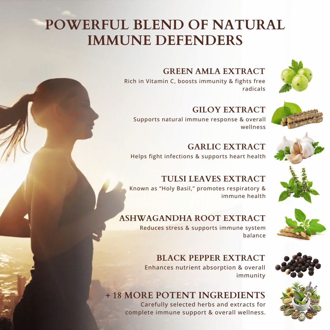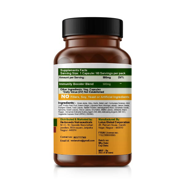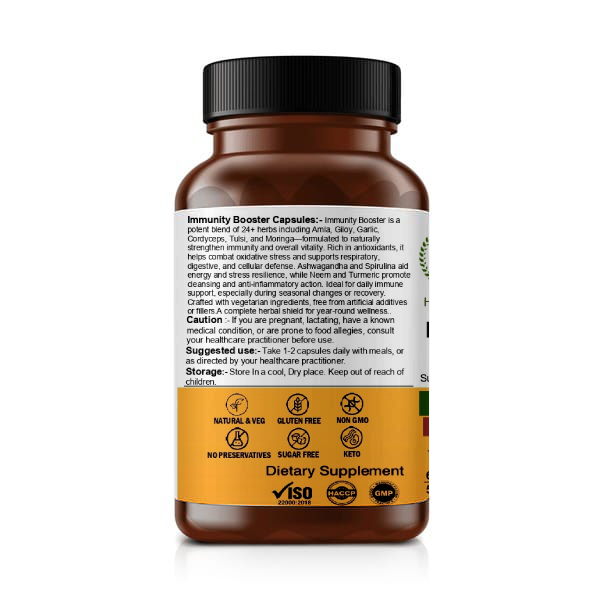 Immunity Booster Capsules are crafted with a powerful blend of traditional herbs, botanical extracts, and nutrient-rich superfoods known for their role in supporting natural immune defenses.