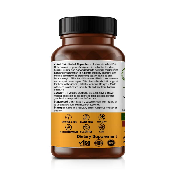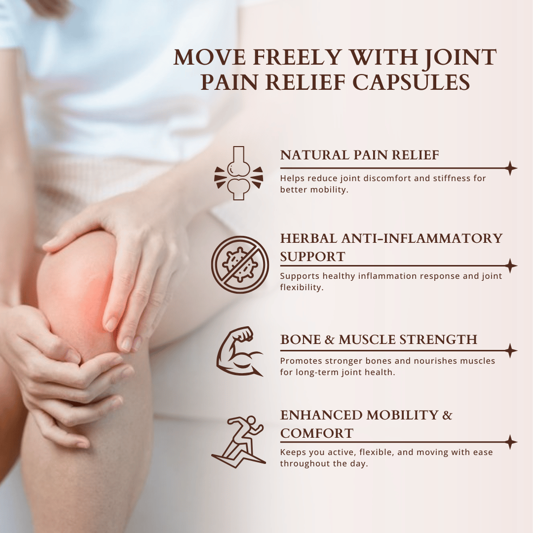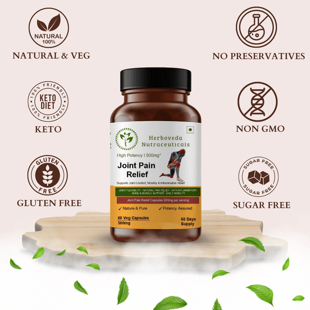Experience targeted joint care with Joint Pain Relief Capsules, formulated using a synergistic blend of scientifically studied herbal extracts known for their anti-inflammatory, antioxidant, and joint-supportive properties. This advanced formula helps relieve joint discomfort, improve mobility, support cartilage health, and maintain overall musculoskeletal function.
