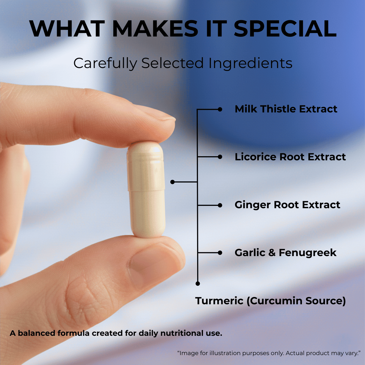 This formula features Milk Thistle Extract, traditionally used to support liver health, along with Turmeric, Licorice, Beetroot, Fenugreek, and Ginger to provide plant-based antioxidant and digestive support. Added B-complex vitamins, Vitamin C, Vitamin E, Zinc, and Selenium help support cellular protection and normal metabolic activity.