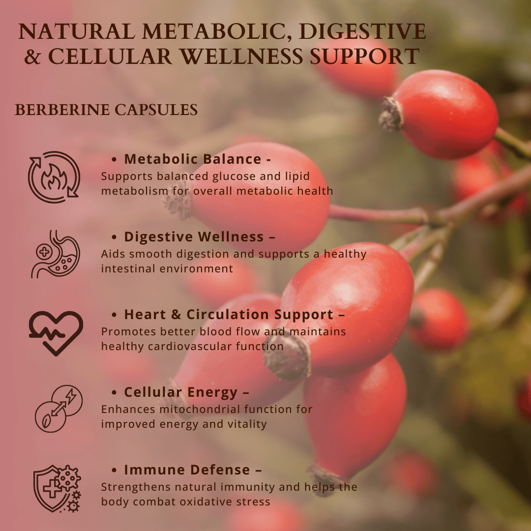 Berberine is a well-researched plant-derived compound traditionally used to support metabolic function, digestive balance Support, and overall wellness. This high-strength formula provides standardized berberine in a convenient capsule format, making it suitable for daily nutritional support.