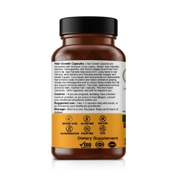Made with clean, plant-based ingredients and free from harmful additives, Hair Growth Capsules are suitable for daily use as part of your long-term hair care routine.
