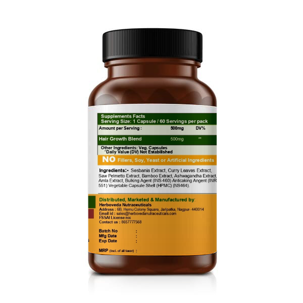 Support your hair health from within with Hair Growth Capsules, a powerful blend of traditional herbs and plant extracts known to nourish the scalp, strengthen hair roots, and promote healthy hair growth.