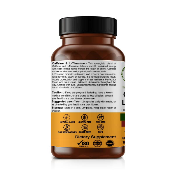 Experience smooth, clean energy and enhanced mental performance with Caffeine & L-Theanine Capsules, expertly formulated to provide the perfect balance of stimulation and calm focus. This synergistic combination helps improve alertness, concentration, and cognitive performance while reducing the nervousness often associated with caffeine alone.