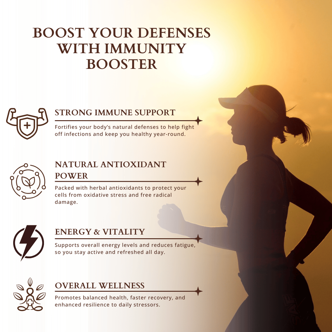 Immunity Booster Capsules are crafted with a powerful blend of traditional herbs, botanical extracts, and nutrient-rich superfoods known for their role in supporting natural immune defenses.