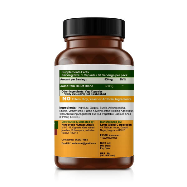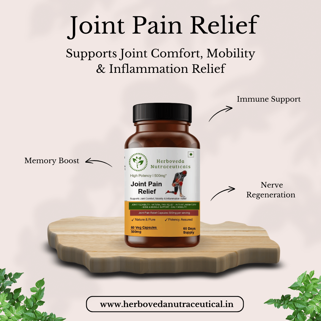 Experience targeted joint care with Joint Pain Relief Capsules, formulated using a synergistic blend of scientifically studied herbal extracts known for their anti-inflammatory, antioxidant, and joint-supportive properties. This advanced formula helps relieve joint discomfort, improve mobility, support cartilage health, and maintain overall musculoskeletal function.