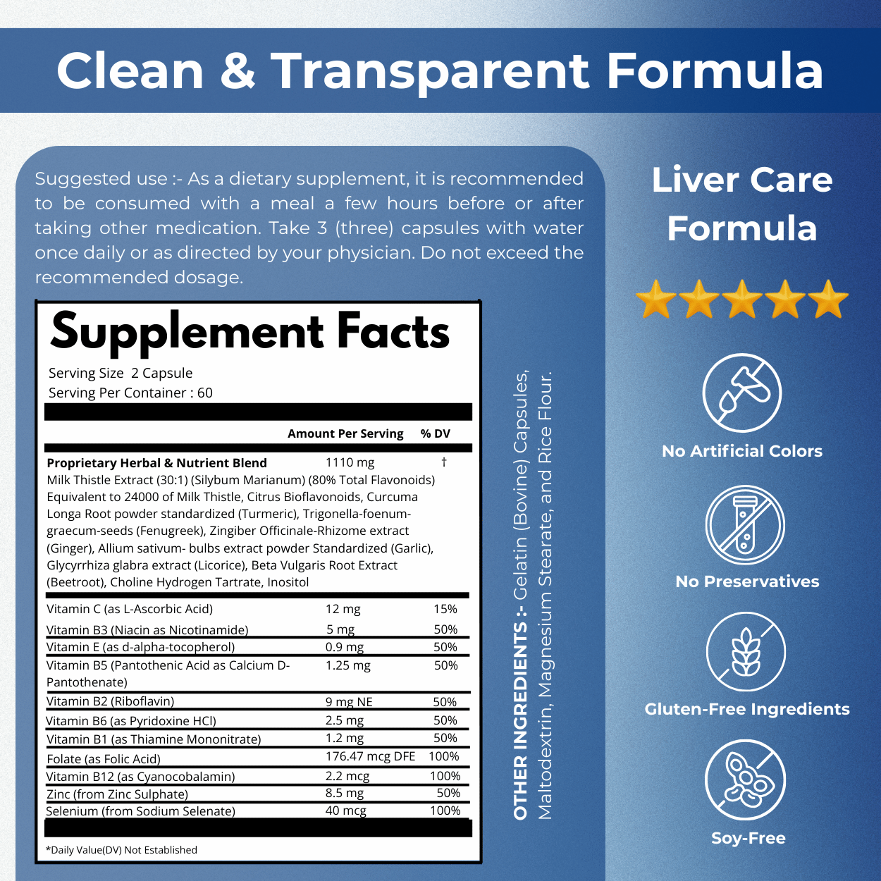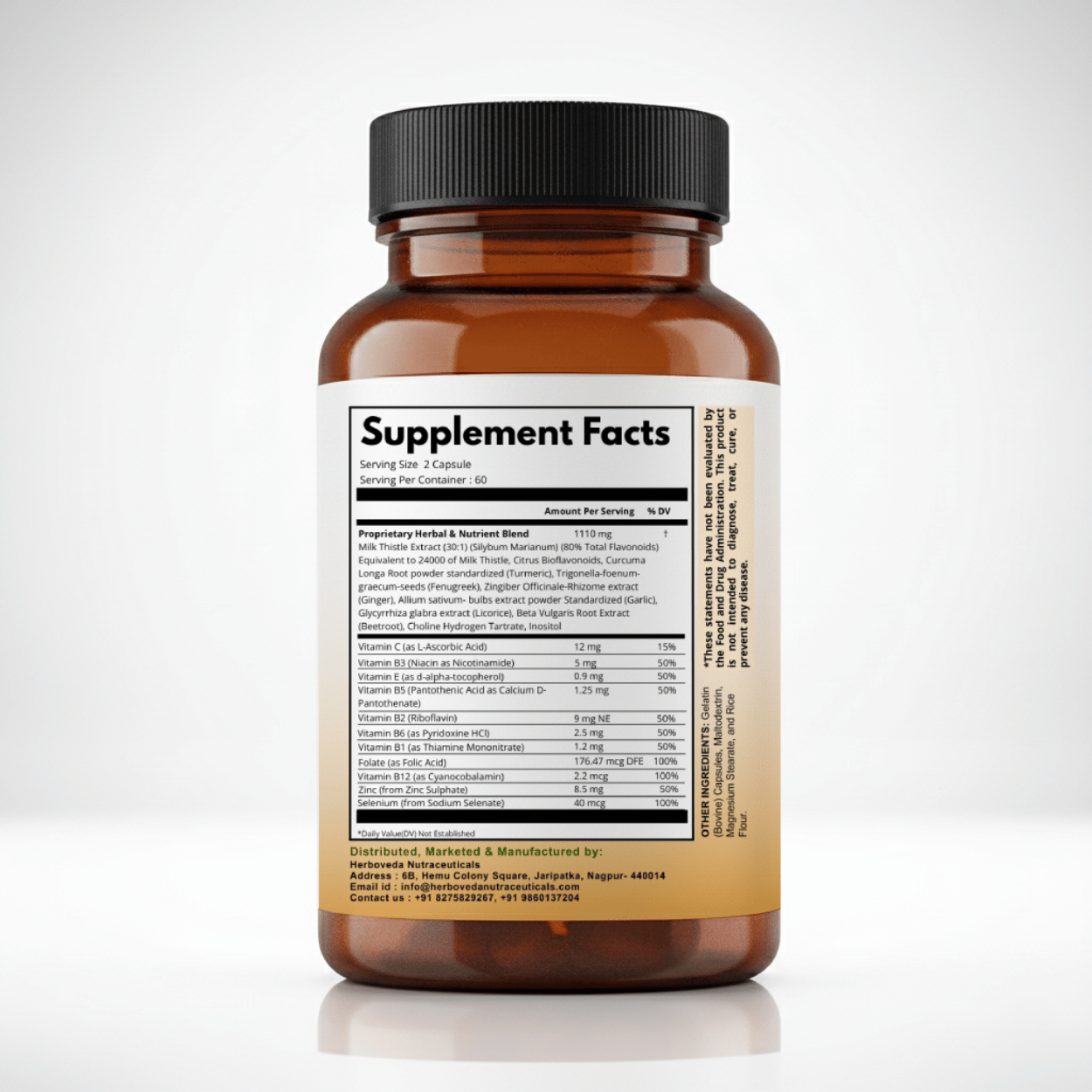 This formula features Milk Thistle Extract, traditionally used to support liver health, along with Turmeric, Licorice, Beetroot, Fenugreek, and Ginger to provide plant-based antioxidant and digestive support. Added B-complex vitamins, Vitamin C, Vitamin E, Zinc, and Selenium help support cellular protection and normal metabolic activity.