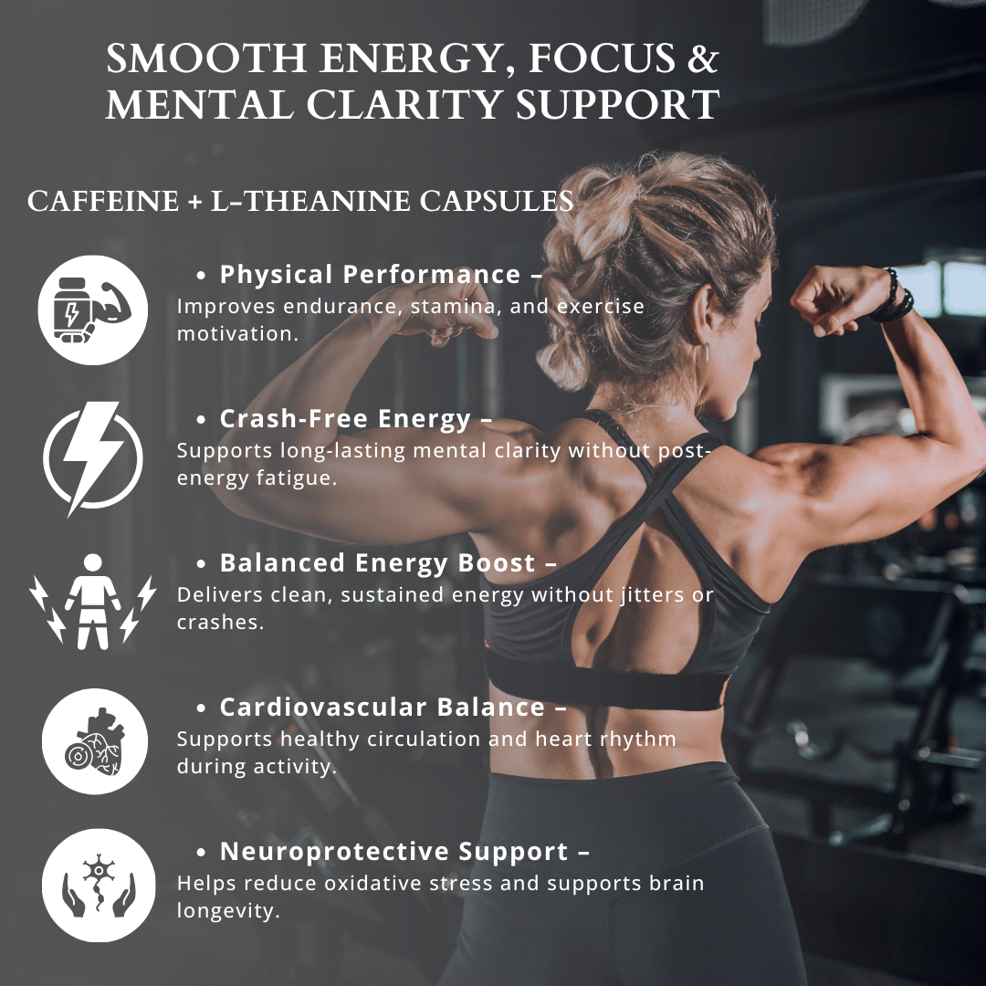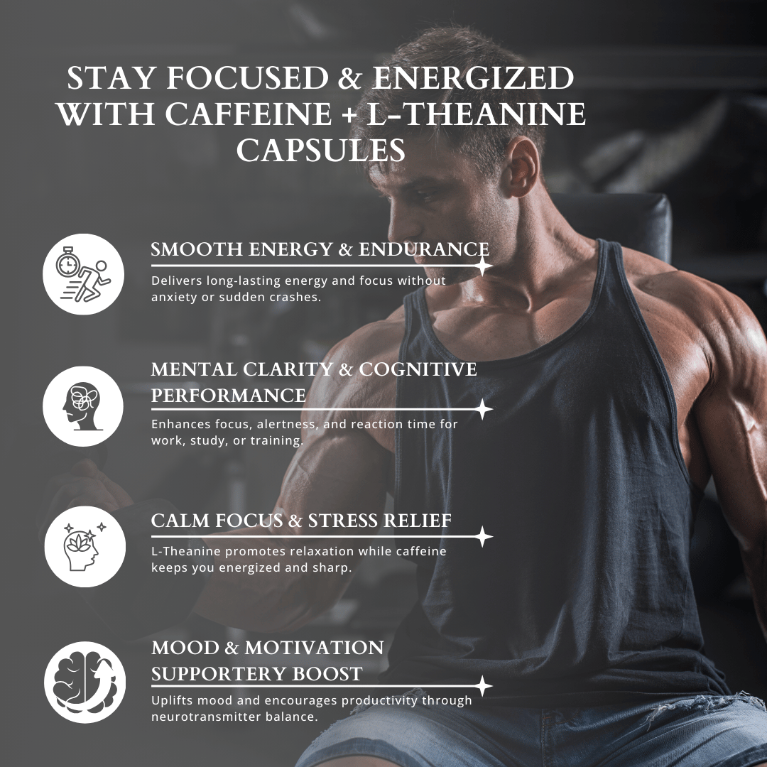 Experience smooth, clean energy and enhanced mental performance with Caffeine & L-Theanine Capsules, expertly formulated to provide the perfect balance of stimulation and calm focus. This synergistic combination helps improve alertness, concentration, and cognitive performance while reducing the nervousness often associated with caffeine alone.
